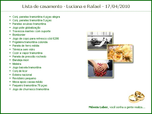 é reservado para que você possa deixar sua lista de casamento conosco.
